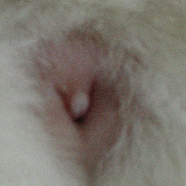 Gut zu erkennen an dem Y. Das Zäpfchen in der Gabelung vom Y ist die Harnröhre.   Hier erkennt man deutlich den Buchstaben i - Der Strich ist der After, der i-Punkt der Penis. Die Geschlechtregion ist durch den Hoden recht dick.  Auch hier erkennt man deutlich den Buchstaben i - der Strich ist der After, der i-Punkt der Penis. Die ganze Geschlechtsregion ist flach wie bei einem Weibchen