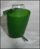 Eigentlich funktioniert der PET-Flaschen-Tränkenhalter genauso wie der von der Tennisballverpackung. Hierzu schneidet man einfach den oberen, sich verjüngenden Teil ab. |